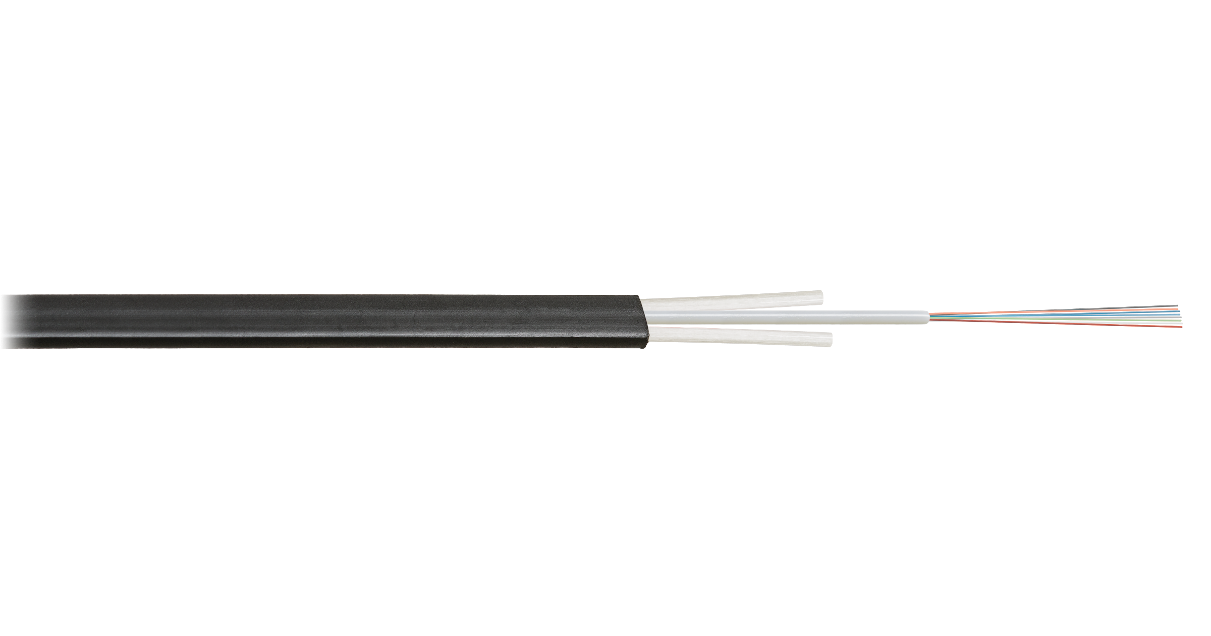 Кабель NIKOMAX волоконно-оптический, 6 волокон, одномодовый 9/125мкм, стандарта G.652.D & G.657.A1, внешний, плоский со стеклопластиковыми прутками, 1,3кН, полиэтилен, черный - гарантия: 5 лет расширенная / 15 лет системная